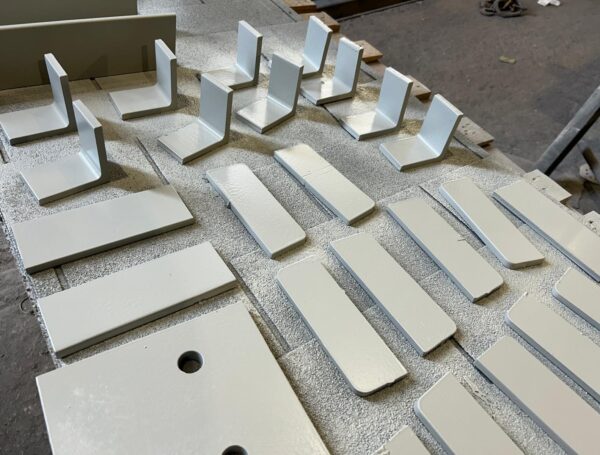 Klientam izgatavojām precīzas lāzergrieztas plāksnes un leņkdzelžus, pielāgotas konkrētam projektam. Pēc tam komponentes rūpīgi nogruntējām, lai nodrošinātu aizsardzību pret koroziju un sagatavotu tās turpmākai apstrādei vai montāžai.